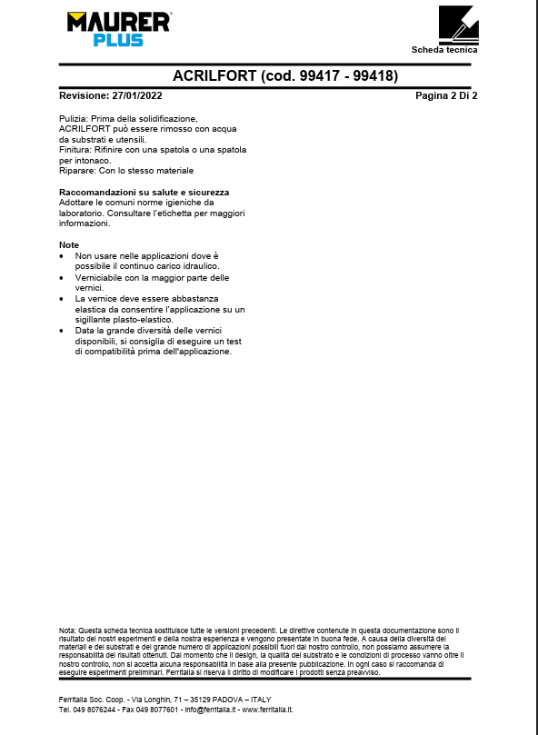 Sigillante acrilico plastoelastico, monocomponente di alta qualità – Esente da odori – Verniciabile dopo la reticolazione – Rimane elastico dopo la polimerizzazione – Adesione molto buona su materiali porosi – Per giunti di connessione in edilizia, fra muratura e profili di porte e finestre, rotture e crepe in murature e intonaci – Non applicare in presenza di pioggia – Temperatura di applicazione: +5°C~+30°C