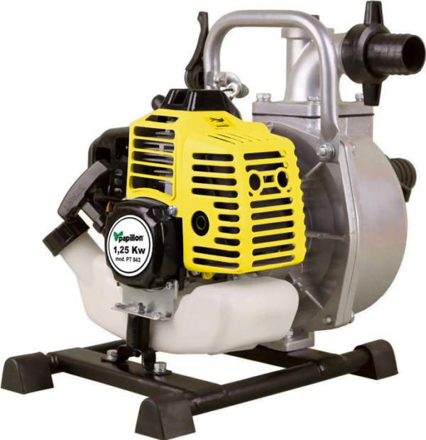 Motore Euro2 2T- Euro 5-42,7 cc. – Avviamento a strappo con autoavvolgente – Carburante miscela 30:1 – Capacità serbatoio 0,95 litri – Altezza max di aspirazione 8 mt. – Portata max 15 m3/h – Bocca di aspirazione Ø40 mm. – Bocca di mandata Ø40 mm. – Prevalenza max 35 mt. – Completa di raccordi – Peso 8,3 kg.