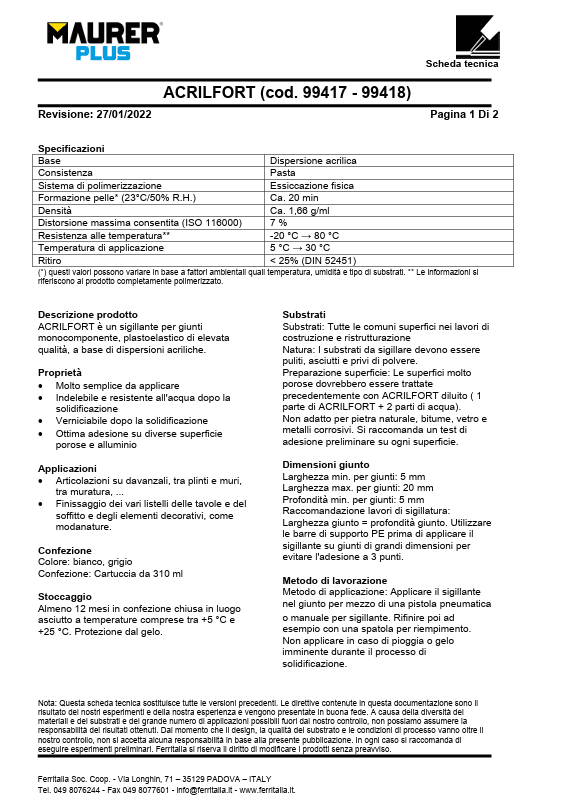 • Silicone Acrilico "Acrilfort" Maurer Plus Bianco 310Ml